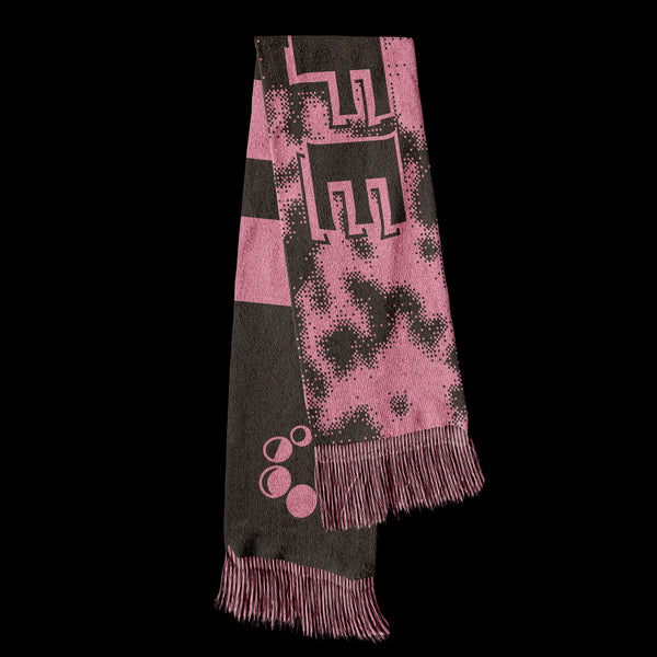 The traditional knitted football scarf is reinterpreted using a pixelated print. The scarf features "Get a nightlife" design. Limited edition.